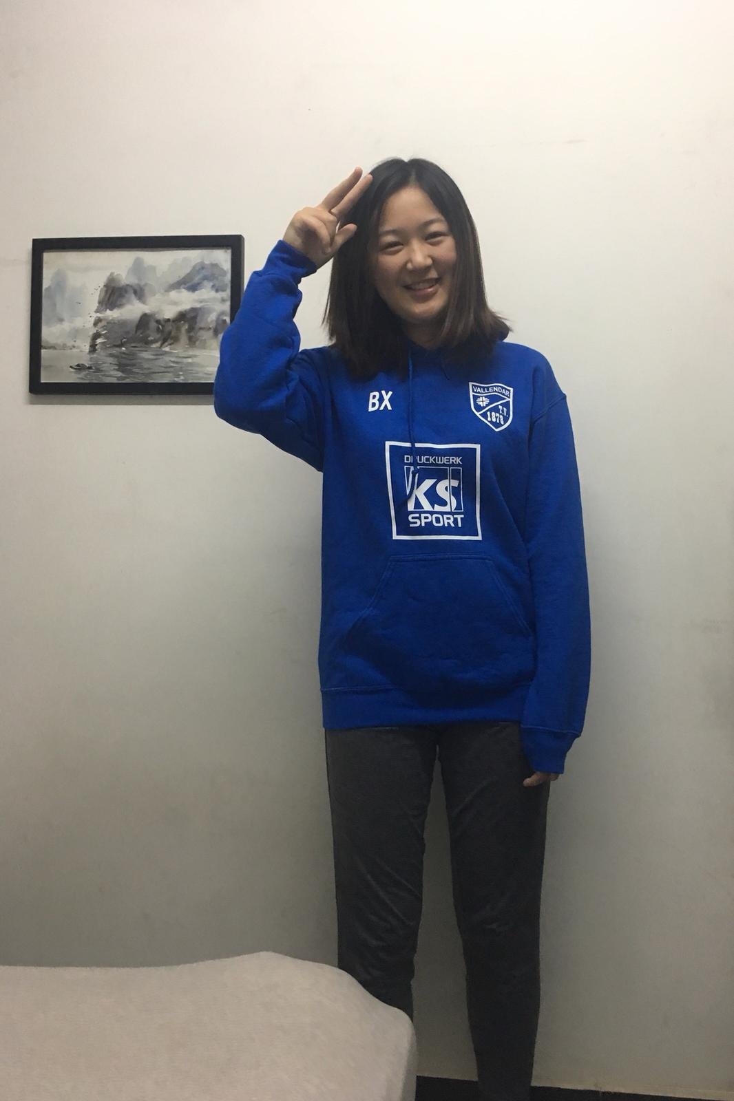 Bella Xu, Studentin aus China, verbrachte in 2018 vier Monate als Austauschstudentin an der WHU in Vallendar und freute sich währenddessen über den sportlichen Ausgleich beim TVV. Begeistert nutzte sie möglichst alle Trainingstermine der Hobbyvolleyballer und integrierte sich auch ohne Deutschkenntnisse in diese unkonventionelle Gruppe. Gerne wollte Bella auch einen Vereinspulli, der sie nun über Umwege (dank Yankee) erreichte und ab sofort in China Werbung für den TV Vallendar macht.