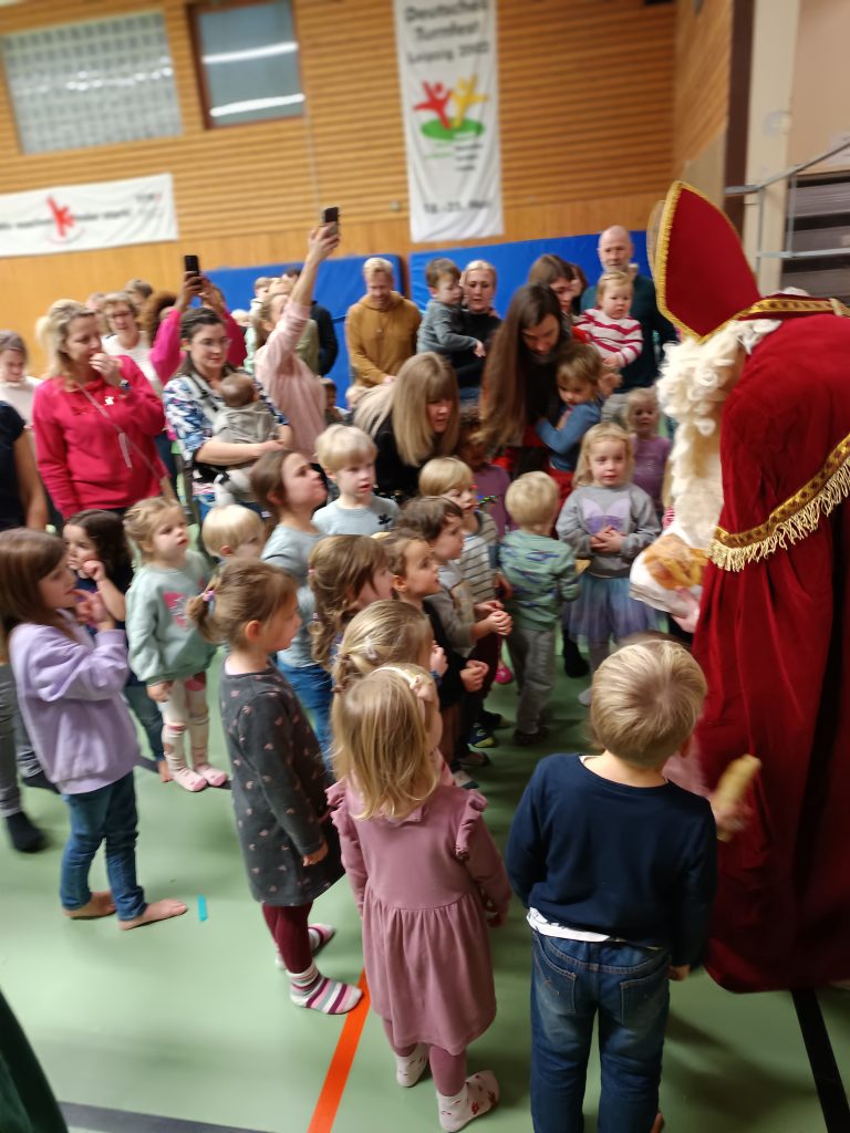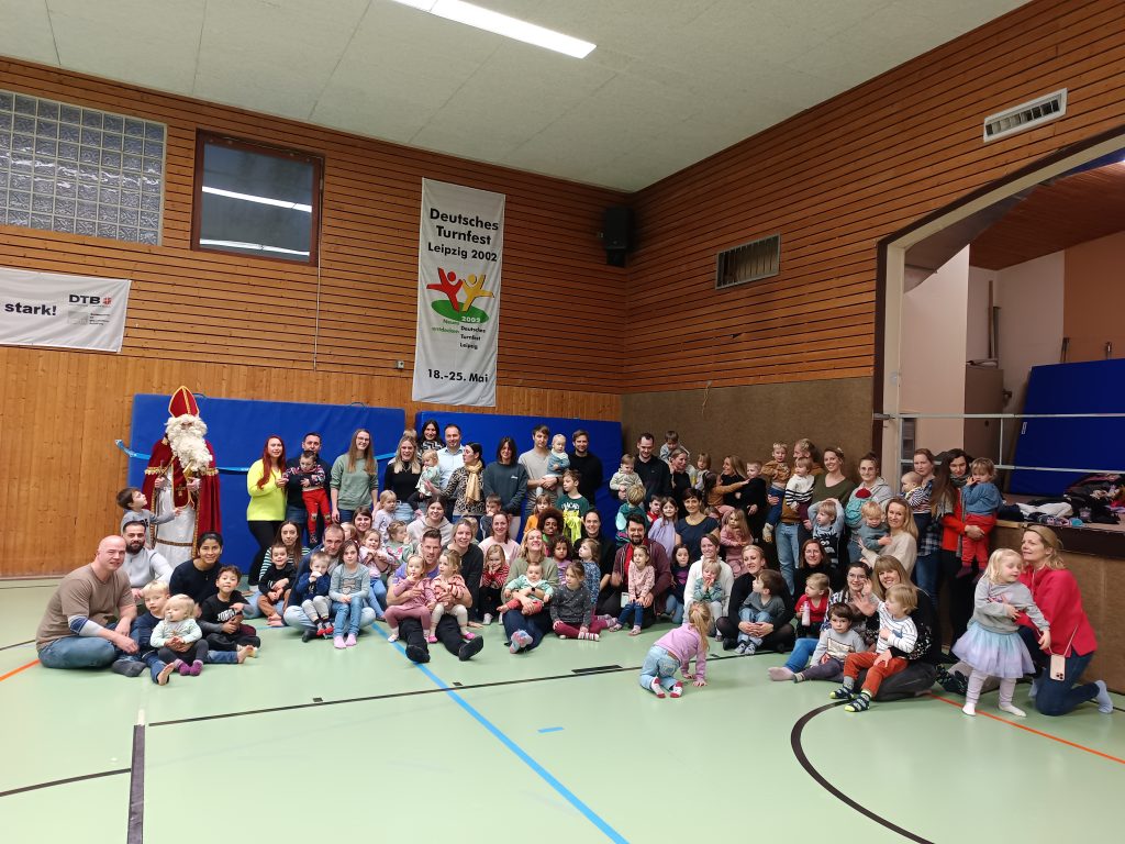 Am Mittwoch besuchte der Nikolaus die fleißigen Turnkinder der Eltern-Kind-Turngruppe Vallendar. Nach einer dreiviertel Stunde Turnen versammelten sich die  Kinder und Eltern in der großen Turnhalle im Kreis und sangen das Nikolauslied.