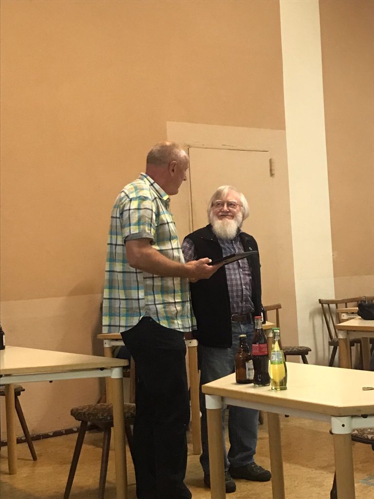 Im weiteren Verlauf wurden die langjährigen Mitglieder des TVV geehrt: Ihr 25-jähriges Jubiläum feierten in diesem Jahr: Katrin Kreul, Bruno Lehnen, Carolin Grenzheuser, Carina Günther und Bernd Nußbaum (der auch seit 20 Jahren als Schatzmeister Mitglied des Vorstands ist). Eine doppelt so lange Mitgliedschaft mit 50 Jahren durfte in diesem Jahr Heinz Schmengler feiern. Ein sogar 65-jähriges Vereinsjubiläum feiert Werner Bayer, der auch bereits Ehrenmitglied des Vereins ist. Hans-Peter Pretz würdigte diese besonders lange Mitgliedschaft mit einem Rückblick auf die bewegten Zeiten Bayers im Verein und dankte ihm für seine Treue.