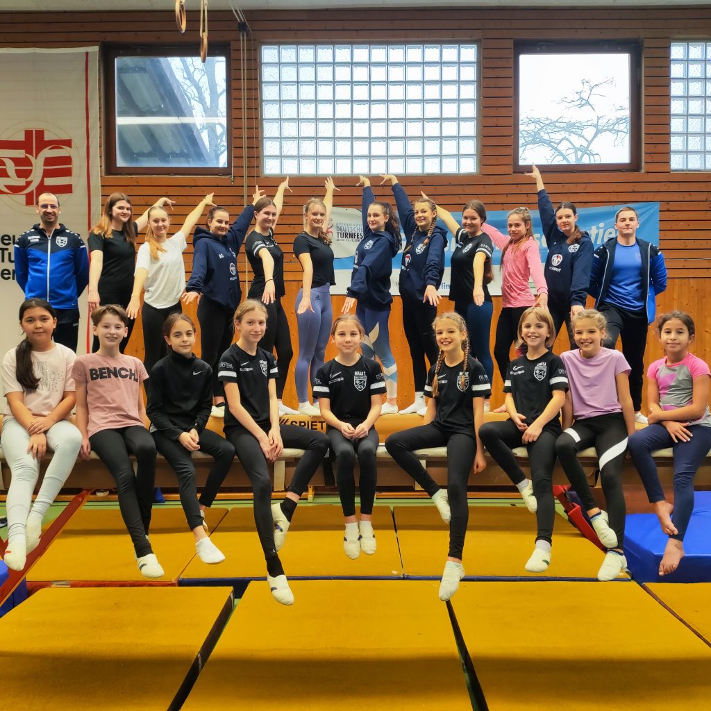 Da simma dabei, dat is unser prima Trainingslager für das Jahr 2023. Zwischen den Feiertagen war es nun endlich wieder so weit. Vom 27. bis zum 29.12 fand das alljährliche Trainingslager der Leistungsturngruppen weiblich statt. Nach den Weihnachtstagen wurde noch schnell mittwochsmorgens groß eingekauft, bevor dann um 12 Uhr der Startschuss für die Eröffnung und damit direkt die erste Einheit fiel. Die Gruppen von Janno Kukies, Kevin Böcking und Alisha Wickert konnten die Jahnhalle als ihren Schlafplatz bezeichnen, während die jüngsten Leistungsturnerinnen, trainiert von Sophia Krätzig und Lilli Ley, sich noch gedulden müssen und die Jahnhalle erstmal nur tagsüber ihre Heimat nennen durften. In den drei trainingsintensiven Tagen wurden die vier Geräte (Boden, Sprung, Schwebebalken und Stufenbarren) bis aufs äußerste genutzt. Beim Erwärmen legten die Trainer großen Wert auf koordinative Übungen und Ausdauer. Während den Trainingseinheiten wurden Grundlagen gefestigt, fleißig neue Elemente geübt, sowie Übungen bis ins kleinste Detail verfeinert. Neben dem Erlernen von neuen Turnelementen, wurde auch durch viele selbstgekochte Mahlzeiten, einen Ausflug und einen Kinoabend, der Zusammenhalt untereinander gestärkt. Ein Highlight war somit am Nachmittag des zweiten Tages, der Besuch in der Schwarzlichtminigolfhalle „Black Pearl“. Am letzten Tag folgte ein weiters Highlight: Die älteren Turnerinnen durften für 3 Stunden im Turnforum auf dem Asterstein trainieren. Durch die besonders gute Geräteausstattung konnten viele neue Elemente ausprobiert werden. Nach einer weiteren Trainingseinheit und einem letzten gemeinsamen Abendessen wurden die erschöpften Turnerinnen abgeholt und das Trainingslager war somit bereits abgeschlossen. Damit kann gestärkt in ein neues Jahr und eine neue Wettkampfsaison gestartet werden. Als Wettkampfs Höhepunkt blicken die Turnerinnen auf das anstehende Internationale Deutsche Turnfest in Leipzig.